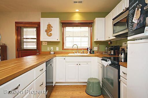 AVAILABLE AUGUST 3rd This 3 bedroom, 2 bath top floor unit is located on a cul-de-sac and is just 1.5 miles (20-25 minute walk) from UVA Hospital, 2 miles from the downtown mall, and a 7 minute walk from the Forest Hills Park with a spray ground and playground. The home features hardwood flooring throughout the main living area and in all three bedrooms, a living room, dining room area, and a kitchen with wooden counters, and white cabinets. Down the hallway is the master bedroom with a walk-in closet and an attached full bath, plus two additional bedrooms, and a full hallway bath with a stackable washer/dryer. The home also offers a front porch, side carport, and driveway parking space. The upstairs tenant is responsible for 60% of the whole house water/sewer bill. The basement tenant is responsible for 40%. Each unit is 100% responsible for their own electricity, gas, cable, and internet. Each unit is also responsible for getting city trash stickers. * Lawn care is the responsibility of the unit A tenant. This property is within the following school district: * Johnson Elementary * Walker/Buford Middle * Charlottesville High No smoking or pets are allowed on the property. Must have a minimum credit score of 640. Upon lease signing there is a security deposit of $1,195 due. First month's rent of $1,195 (unless otherwise prorated) is due prior to the lease start date. (RLNE1883831)