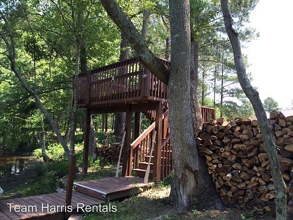 Waterfront in Tingen Pointe, country living & just 20 minutes from Ft Bragg WATERFRONT in Tingen Pointe! 3 bedroom 2 bath ranch with bonus room. Split floor plan, master bedroom has his and her closets, great room with fireplace. Enjoy the water views from the two back decks, back fire pit, or storage/workshop shed. Large Corner Lot. Fish and kayak from your own back yard.