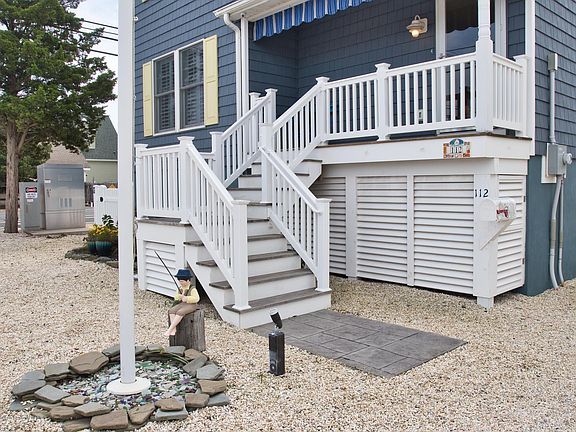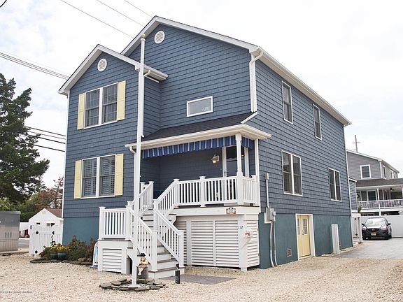 Lavallette - This large 4 bedroom, 2 1/2 bath shore colonial is tucked away in north-end of town and is just 2 blocks to the beginning of the boardwalk and two blocks from the beginning of the bay beaches. First floor has a large living room with gas fireplace which flows into the dining room and kitchen. Kitchen has been recently renovated with white cabinets, granite countertops, stainless steel appliances and a large center island. Additional living room on the first floor can be used as 5th bedroom. 4 large bedrooms on the 2nd floor including a master suite. Private rear deck for outside entertaining and a spacious outdoor shower. This home has been elevated above FEMA requirements with Helical piling which provides plenty of storage/use underneath the home. One car detached garage!