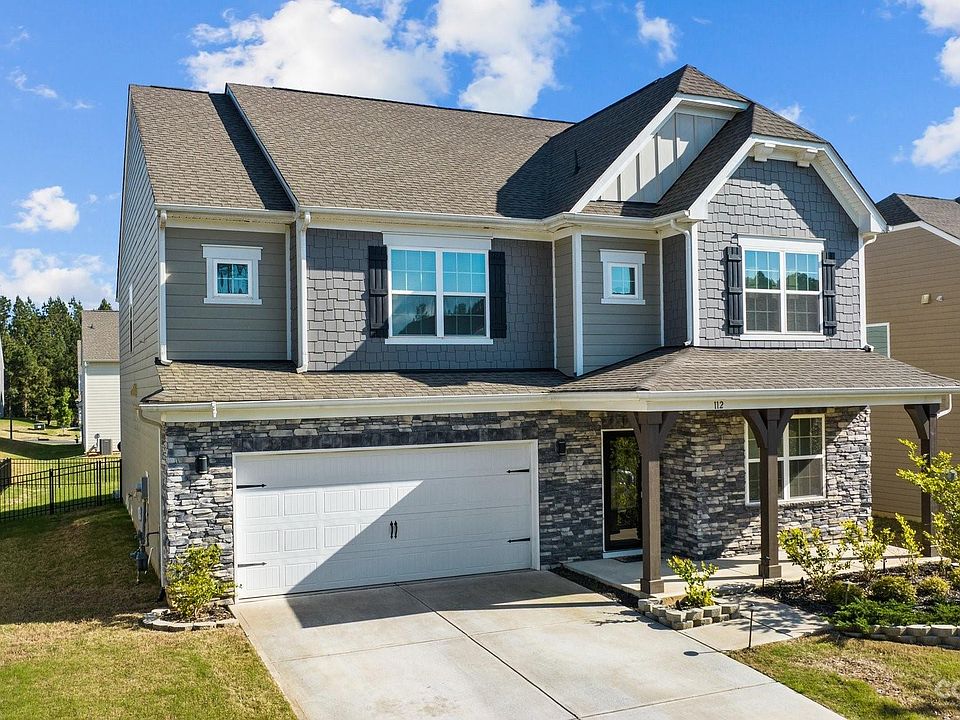 Welcome home to Falls Cove at Lake Norman! TONS OF SPACE in this 5 bedroom, 4.5 bath home with 1st floor guest suite with private full bath! Open floor plan, granite counters, tile backsplash, stainless appliances, separate dining room with chair rail molding, and office with french doors on main level. HUGE loft, laundry room, and spacious primary bedroom with ceramic tiled shower and garden tub on 2nd level. Walk-in closets and ceiling fans everywhere. Useable level fenced backyard! Upgrades include an enclosed screened back patio, front storm/screen door, backyard fence, garage shelving, Rain Bird multi-zone irrigation system, exterior lighting, and beautiful custom landscaping. Community amenities include a beautiful pool, clubhouse, fitness center, playground, sidewalks, street lights, and walking trail. Conveniently located minutes from Lake Norman, Lake Norman State Park, and downtown Troutman. Only 15 min to Mooresville shopping, restaurants, and entertainment.