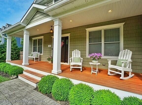 Stunning SHORE COLONIAL in prestigious Atlantic Highlands. Beautiful covered front porch leading into 2-story entry foyer, 5 BR w/ bonus room, 3 full bath, mudroom, formal DR, a dream kitchen complete w/ SS appls, granite counters, center island, custom cabinets & LG pantry, which opens up to the great room with a gas FP, coffered ceiling & custom molding throughout. BR on 1st FL which could serve as guest or in-law suite. Open, bright & spacious floor plan with 9' ceilings. master suite w/ tray ceiling, XL walk in closet, an oversized shower & a soaking tub. The backyard oasis is completely fenced in, prof landscaped with a large paver patio and custom outdoor kitchen with bull grill, ice chest & garbage bin all built in. LG unfinish basement w/ poured concrete with VPR & home generator.