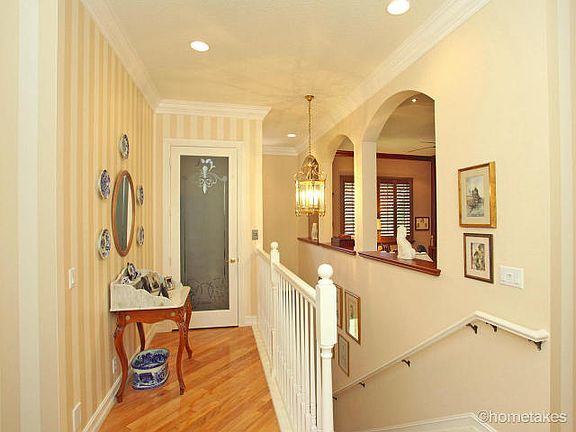 Fully hurricane protected, 2nd floor great room unit overlooking lake has it all! Wood floors, etched glass elevator doors, plantation shutter, tumbled marble, granite, surround sound, crown molding, granite bar, built-in office, built-in his and her walk-in closets, more storage and closets than other units! (Exclusions: Light fixtures in breakfast area and dining room, powder room mirror.)