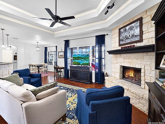 Honey, STOP THE CAR!! Come enjoy this gorgeous backyard with enough room to host your favorite holiday with friends and family or kids to run around everyday! This home was made to build your own memories! The open floor plan and split bedrooms makes for an amazing layout with custom touches throughout! The front room off the living has so many possibilities! The fireplace and the view will capture your heart! The lot couldn't be in a better spot to enjoy all the city park has to offer yet feel like you're in the country! Such an easy commute hope on 181 and make it to SA in no time at all!
