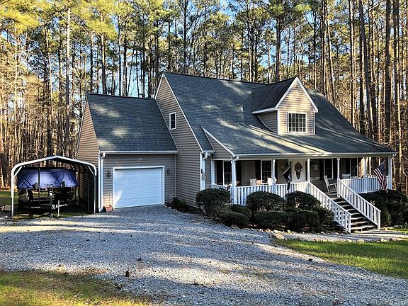 BEAUTIFUL LAKE HOME W/PRIVACY! Comes furnished plus riding mower. Large main floor master suite and 2 additional large bedrooms. Huge eat-in bar in open kitchen floor plan where the owners entertain lots of family members. Waterside deck complete with a propane firepit for sipping wine or a good bourbon on those cool nights. Covered rocking chair porch w/swing and rockers too. Sit back, relax, and enjoy peace and quite, and nature with your morning coffee. Wide, cleared path to the water and some water view. 63' at DOM HWM on the main Lake side of Lizard Creek. No pier/boathouse allowed but you are very close to both boat ramps. Subdiv. is one of only a few to offer a community pool and HOA's are only $150/year. Centrally located, Approx.1 mi. from Food Lion, Ice Cream and Coffee shops! Location, Location! BONUS: There is AHS Home Warranty transferable to new owners!