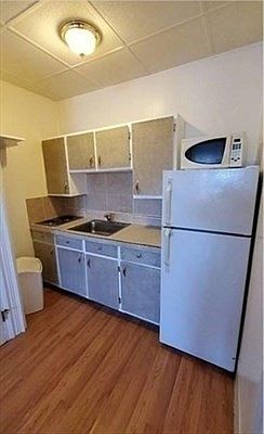 Sunny top floor studio unit with a bay window with pretty city views in an excellent South End location on Pembroke Street. Heat, hot water and electricity are included in the rent. No Pets Single occupancy only April 1 start date.