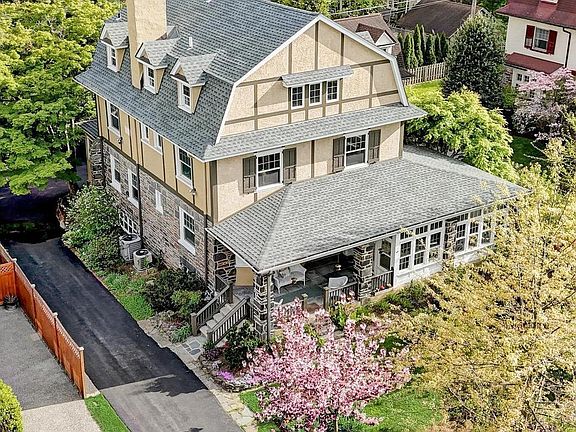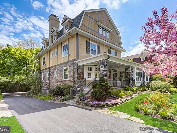 Nestled on one of Bala Cynwyd's most beautiful & desirable streets you will find 112 Penarth Road. This stunning, extremely well-maintained 5 bedroom, 3.5 bathroom stone-accented Dutch Colonial is framed by beautiful seasonal plantings which enhance its picturesque setting. As you enter you are welcomed by the large enclosed sunroom with a cozy gas fireplace. The large windows invite the outdoor landscape inside, making it a perfect living space, entertaining space,or a fabulous home office sanctuary. Continue into the sun drenched family/living room complete with beautiful hardwood floors, large windows with deep window sills, 12' ceilings & a wood-burning stone fireplace. Beautiful hardwood flooring continues into the large dining area with a charming bay window. The dining area opens into the updated kitchen complete with beautiful custom wood cabinetry, Dekton counters, custom ceramic backsplash, double oven, recessed lighting, stainless appliances & breakfast bar. Just off of the kitchen is a mudroom where you can stow all your gear or grab your coffee as you go out the rear door, which leads to a detached 2-car garage & charming backyard garden area. A convenient half bath completes the main level. A beautiful wooden staircase leads to the 2nd floor which offers 3 very generously-sized bedrooms, one of which has an ensuite bathroom & dressing area, plus an updated full bathroom in the hall. Continue to the 3rd floor where you find a spacious Primary Bedroom with a large walk-in closet & a spa-like ensuite bathroom with soaking tub & shower. Two additional rooms complete the 3rd level, which could be used as offices, your personal workout area or more! The large unfinished basement presents lots of possibilities both for future living space as well as storage areas. 112 Penarth Road is conveniently located close to shopping, restaurants, parks, entertainment & more! Just minutes to the Cynwyd Elementary School, Bala Cynwyd Library & the Cynwyd Heritage Trail. Enjoy a short commute into the city- whether you choose to drive or take the train from the Cynwyd Station. This is a stunning property in an amazing neighborhood! Book your appointment today!