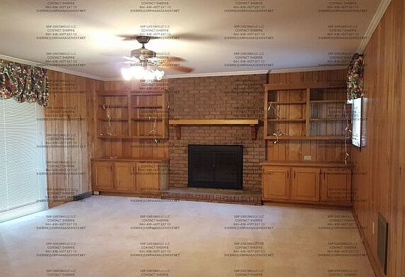 Beautiful and spacious! Huge brick ranch with tons of storage and large yard on corner lot! - This beautiful home is located in Forrester Woods subdivision just a couple miles from Woodruff Rd and Butler Rd in Greenville with convenience to I-385. Property comes with 2 outdoor storage buildings, one with garage and overhead storage as well as double carport on the back of the house with an additional storage room!! Large kitchen and dining room with kitchen appliances provided. Mud room/laundry room off kitchen. Hardwood floors throughout common areas with carpeted bedrooms. Huge den with fireplace, built-in bookcases and sliding glass door to carport area! Formal living room with hardwood floors. Large bedrooms and 2 full baths with ceramic tile. Central gas heat and air, gas stove, gas water heater. Some ceiling fans and lots of charm! Yard is perfect for those who like to garden! NO PETS Contact for details.