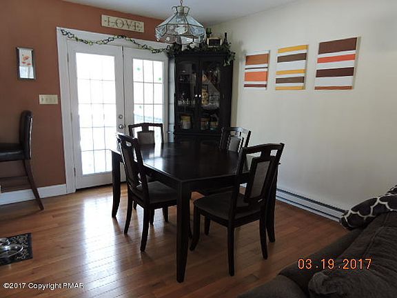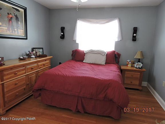 RIGHT ON THE CORNER AND ON A CUL-DE-SAC. This 3 bedroom, 2 1/2 bath contemporary home has a full finished basement, hardwood floors on main level with cathedral ceiling. Open floor plan leads to brick fireplace in the living room. Family room has a pellet stove to keep you warm. Master suite is on the first floor. Pleasant Valley School District. IT'S A MUST SEE!