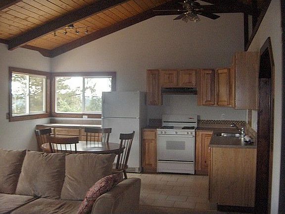 Immaculate mountain home/cabin; great Southern exposure; fantastic Pikes Peak views; all appliances included; pellet stove and gas heater in living room; vaulted tongue & groove cathedral ceilings in living room, kitchen and Master; new hickory cabinets in kitchen; new windows; new exterior paint; new oversized detached garage, large enough for a workshop area.
