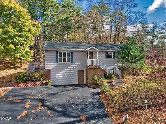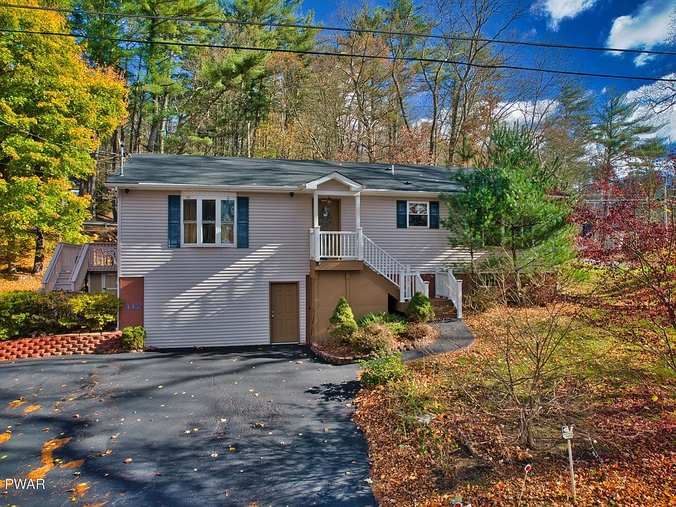 Welcome to 112 Pine Acres Lane, a spacious and inviting Raised Ranch that is within walking distance to the charming Apple Valley restaurant and shops, as well as the historic Grey Towers, renowned for its stunning grounds and seasonal events. This location offers a delightful blend of community life and natural beauty. Additionally, you'll find yourself just a short stroll away from the historic town of Milford, brimming with quaint shops and dining options. Step inside to discover a welcoming front entry with a natural gas fireplace, a large Living Room that flows beautifully into the spacious Kitchen that is equipped with Cherry cabinets, granite countertops, stainless-steel appliances and a charming coffee bar that adds a cozy touch. The Dining Area is right off the Kitchen and is a perfect size for any table. There are three generously sized bedrooms and three bathrooms. The Primary Bedroom has double closets and a private bathroom. Another full bathroom finishes off the first floor. Downstairs is a Laundry Room and finished basement that is now a huge Rec Room with its own bathroom. Off the Rec Room is a heated Storage Room that was previously a 2-car garage and can be easily converted back since the original doors are still intact behind the new wall. Outside, you'll find a large shed with additional upper-level storage, perfect for storage or hobbies. The front stairs has new Trex decking and the side deck is a great size with built in storage underneath. The paved driveway enhances the property's curb appeal. The home has a newer roof and a new hot water heater, ensuring peace of mind for years to come. With its thoughtful design and prime location, 112 Pine Acres Lane is a true gem waiting to be called home. Call for a showing today.