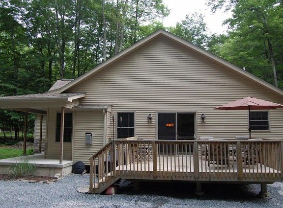 Contemporary Ranch Style home with a Modern Flair. This Gorgeous Home Features Open Concept with a Fantastic Kitchen, Cherry Cabinets, Granite Countertops, Stainless Steel Appliances, Double Sink, Recessed Lighting and Hardwood floors. Living Room with its Vaulted Ceilings offers a Beautiful Stone, Gas, Fireplace and plenty of Natural Light. Additionally there are Three Large Bedrooms w/ Ample Closets including a Master Bedroom and Private Bathroom. Walk out onto the Deck from the Sliders in the Dining Area. Roast Marshmallows on the Stone Firepit, Relax on the Covered Porch, or Take the Quad/Golf Cart to the Lake/Beach in this Gold Star Community. Great Retirement or Vacation Home. Convenient to All Major Roadways including Route 80, the PA Turnpike and All Pocono Attractions. Call Today!