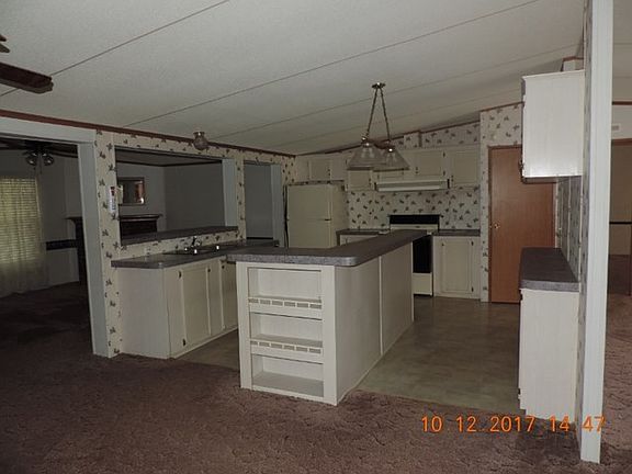Spacious triplewide mobile home just minutes from town. This 3 bedroom / 2 bath home has a lot of room for the growing family. The interior features a formal living, den with fireplace, kitchen with center island, and dining area. This is a split bedroom floor plan and is move in ready. The exterior includes a screened porch on the rear, detached double carport, and chain linked fencing with gate.