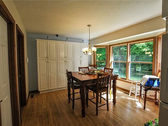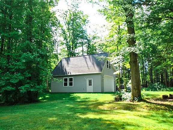 Private and wooded setting! Great room with fireplace and walls of windows over looking the wooded back yard. Large kitchen with an island, tons of cabinet space! Master suite complete with en suite and walk-in closet. Partially finished basement. Two additional garages, 3+ stalls, a mother-in-law suite above one and storage above the other.