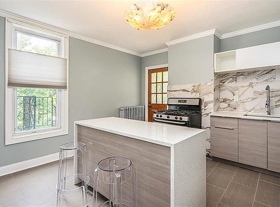 This impeccable rental situated on a corner lot with 3 exposures is a combination of new & original details! Located in Riverview Art District of Jersey City Heights. This is a 3 bedroom, 1 bath duplex. Some of the many features include renovated modern kitchen with Fabritec European Cabinets, crown molding, newer bath, hardwood floors throughout, double pane windows, flooded with natural sunlight, new-brick front porch, rear deck with custom ornate ironwork and the list goes on. On site parking available for extra cost. Beautifully landscaped with Japanese Maple, Weeping Cherry & Pear trees. Close proximity to public transportation, major highways, parks, pool, Franklin Avenue Steps to Hoboken, cafes, restaurants and shops. Don't miss this show stopper Available ASAP