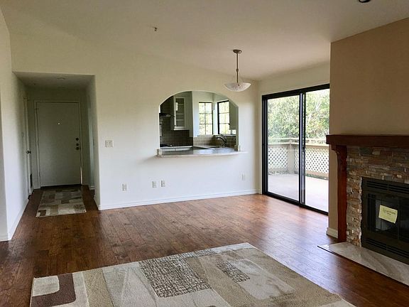 Beautiful 2 Bedroom, 2 Bath, Condo, in the Oaks Community in Del Rey Oaks. Kitchen features granite counter tops and a gas range. Fireplace gas insert in living room. Beautiful hillside views, nice sunny balcony off the dining area. Hardwood floors and carpet. Corner upper unit. Community pool and club house. No pets. Available April 5. Rent $2575. Security Deposit $2575. Landlord pays for sewer and trash - tenant responsible for all other utilities. Laundry: in unit. Parking: 2 spaces(one covered and one uncovered). Storage: Outside storage closet. Pets: No.