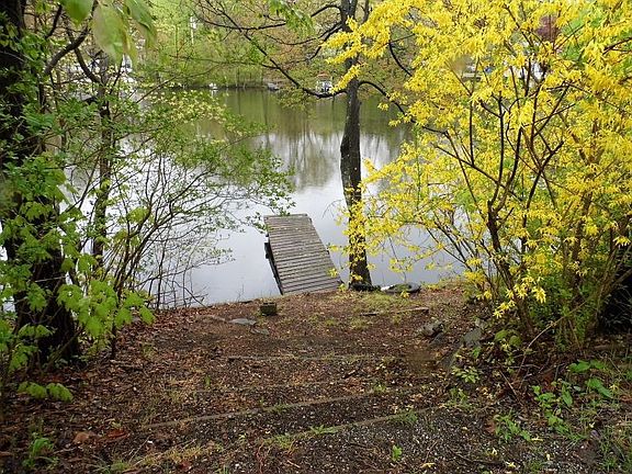 Lakefront home on Upper Greenwood Lake. 600 square feet includes two bedrooms, kitchen, living room, and bathroom. Porch overlooking lake and dock.