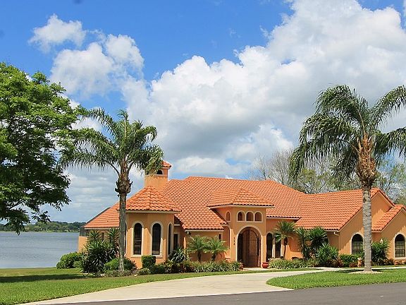 An exceptional custom-built lakefront home on beautiful Lake Juliana! Quality is evident in every aspect and detail of this home. Beautifully landscaped and situated on 1.38 acres with over 200 ft of lakefront. Soaring ceilings in the oversized living room that boasts of a dramatic fireplace and staircase leading up to the 4th bedroom/bonus room with its own private balcony. Master bedroom suite features 2 full baths and opens out to a private screened lanai with swim-spa for either relaxing or exercising! Spacious kitchen with center island(granite) and lots of cabinets, built-in nook, breakfast bar and separate desk area. 41x12 screened lanai is perfect for entertaining and watching breathtaking sunsets over the lake. Home features 4 bedrooms and 3.5 baths, an office, separate formal dining room, large laundry room, family room and an oversized 3 car garage. Enjoy your watersports from your own private beach, dock and boathouse with an electric boat lift. This home is a rare find and is in immaculate condition, just waiting for your family! Very convenient access to I-4, Tampa and Orlando.