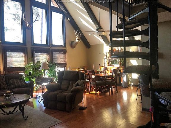 Beautiful A-Frame offers open living, dining to kitchen. 3 beds, possible 4th bed/den with fireplace insert, 3 baths; Updated Kitchen with Quartz Countertops; Windows. 2 Car Garage. Outdoor living at its best with Privacy Fenced back yard w/18 x 32 oval inground pool with waterfall, Gutter Pro gutter system installed, large deck for entertaining!