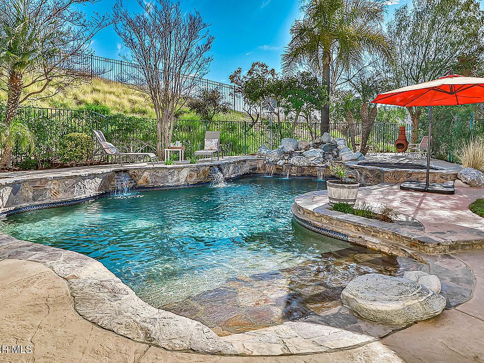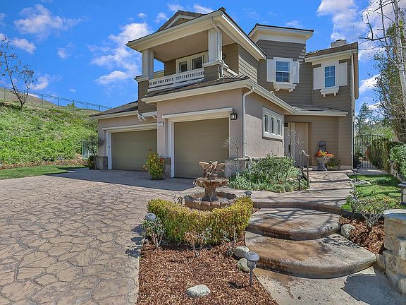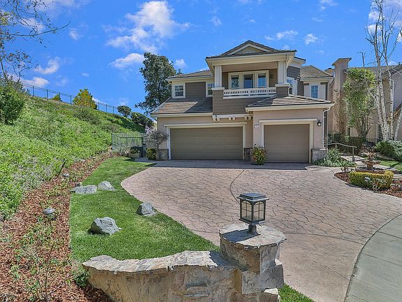 Welcome to Paradise! This unique view property is situated atop a premium cul-de-sac, location with only one direct neighbor and backs to open space. Amazing tranquil breezes and sweeping VIEWS will make you want to call this home. This 5 bedrooms, 4.5 baths gem features 1 bedroom w/ its own en-suite bath downstairs as well as a newly renovated, separate powder room for guests. Upon entering the home, you are greeted by a light and bright living room with vaulted-ceilings & hardwood floors. The completely remodeled chef's kitchen has a large island and bar seating, finished off with gorgeous granite slab counter tops, stone accents, and Viking appliances. A large walk-in pantry has been added under stairs. The eat-in kitchen is open to a family room with stone hearth, a cozy fireplace & entertainment center. The kitchen also offers counter bar seating and allows pass through and views to the formal dining room. Dining room, kitchen & downstairs bedroom all have direct access to the backyard, serene side courtyard with vegetable garden, and citrus trees. Kitchen & family room overlook completely private backyard w/ VIEWS, grassy area & amazing pebbletec pool & spa with beach entry. Fully paid for solar system and newer tankless water heater also included, and smart sprinkler system, controlled by phone app. Upstairs the master suite's views will make it hard to leave in the morning and offer relaxing sunset views upon your return. Master has 2 closets, 1 is a walk-in. 3 additional beds upstairs, 2 sharing a jack & jill bath & 1 newly renovated en-suite bath, simply stunning! Also upstairs is a small bonus loft area, currently used as an office, as well as conveniently located laundry room. Both interior and exterior are freshly painted. 3 car garage features epoxy finished flooring. This unique property features guard gated security, nearby hiking trails, cascading hillside and sunset views and superior location. Book your showings Sat or Sun, or this will be gone!