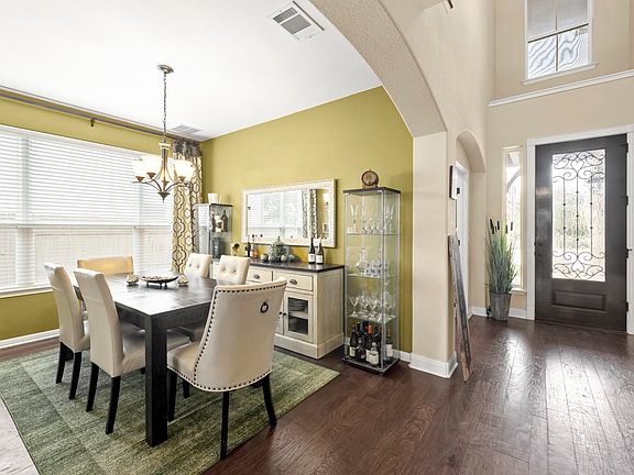 Gorgeous residence with a plethora of upgrades as it was originally built as a model home. Very spacious layout with high ceilings and plenty of natural light. Located in desirable Rancho Sienna, this home falls in the highly accredited Liberty Hill school district. Large lot on a quiet street and just a short walk to the pool/clubhouse. Master suite as well as laundry room are located on the main floor. Beautiful cabinets, countertops and backsplash make the kitchen very aesthetically pleasing. Two dining areas and two home offices! Third garage space was converted to an office and storage room which is accessible via the garage. Garage as well as office space is heated and cooled. Upstairs is where you will find three bedrooms, two full baths, a loft AND a flex room. Home is wired throughout with sound and cat5