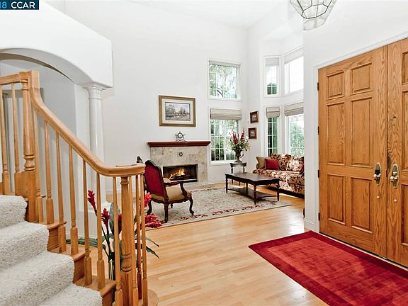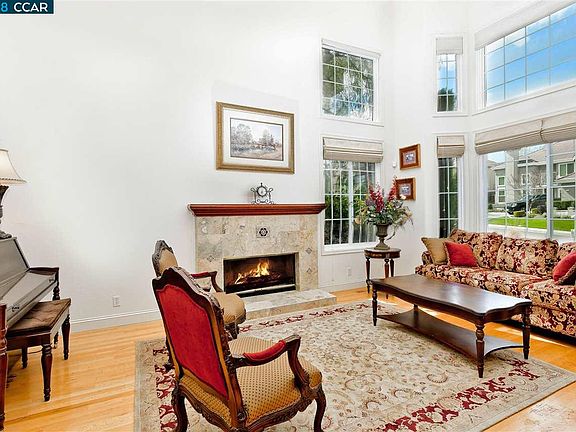 Price Reduced! Elegant formal living & dining rooms. Hrdwd flooring flows into a gracious family room w center stage kitchen. Floor to ceiling windows flood the living space with natural light. Fully appointed kitchen features granite slab island & counter tops, cherry cabinets, 5 burner gas cooktop, wine rack, double ovens, large pantry and more all accented by recessed lighting. Soaring ceilings in much of the home accentuate the contemporary open design. Master retreat is on 1st floor with dbl sided fireplace between bedroom & soaking tub. Frameless step-in shower, dual sinks, walk-in closet. Glass slider to a hot-tub just outside. Classic wood banister stairway with display platform and open balcony design leads to open loft area plus 3 more bedrooms and main bath. Expansive entertainer's rear yard w BBQ counter, patio platform for outdoor dining & Italian style rose garden with minimal maintenance hardscape. Walk to trails and shopping. OPEN HOUSE May 6th 1-4 pm