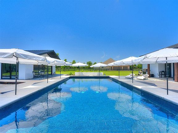 Luxury living just minutes from Norman! Situated on a spacious acre lot, this three year old custom home is just what you have been looking for! An experience from the moment you drive up, with contemporary finishes, a circle drive, separate garages fitting 3 cars, and a grand entryway surrounded by windows. The open concept living room with cathedral ceilings flows into the oversized dining room and immaculate kitchen. Chef’s kitchen features built in stainless steel appliances, a quartz waterfall island with seating, and abundant storage! Truly an entertainer’s dream with the kitchen and living room leading to the incredible backyard, featuring a huge covered patio with a fireplace, a bocce court, air conditioned pool house (16’x24’) connected to the shop (24’x24’), a large composite deck, and new heated saltwater pool with built-in umbrella holders. The primary bedroom in the main home offers an eye-catching ceiling, views of the pool, and private access to the covered patio. The en suite has a beautiful soaker tub, floating vanities with under mount lighting, an Australian shower and a giant walk-in closet with floor-to-ceiling hanging space. Currently designed as a 3 bedroom home with an office. The 3rd bedroom was designed as two separate bedrooms, each with spacious closets, right now it is being used as a large game room however it is built and wired to be able to add a wall, making this a 4 bedroom with an office. All located in the sought after Washington school district. Rest easy knowing that your dream home is "Peace of Mind Certified" with a pre-inspection and transferrable 12 month home warranty. Inspection report available upon request. Don't let this one get away!