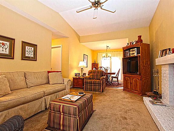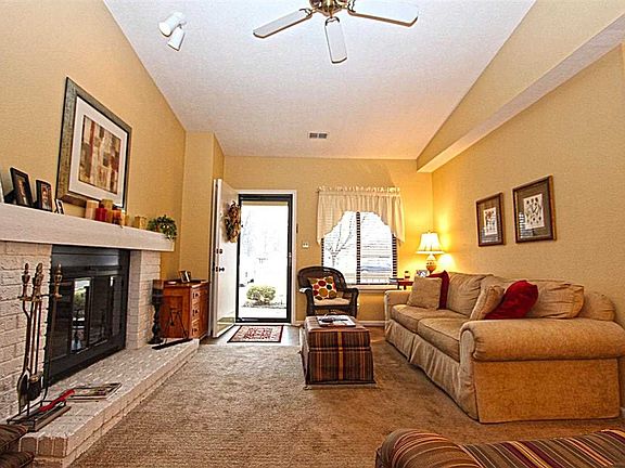 Nothing to do but move in and enjoy!! This cozy, maintenance free condo features a vaulted living room with wood burning fireplace, dining room open to the updated kitchen, 2 bedrooms, a full bath, private brick patio for entertaining and attached 1 car garage! Neutral paint and flooring throughout. Call today for your private showing!!