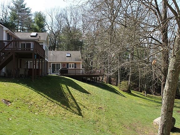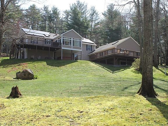 Tucked away in quintessential Monson, MA this private retreat hosts a 3 bedroom,3 bath main house and a 1 bedroom,1 bath,kitchen and living room legal in-law apartment. Cathedral ceilings in the kitchen and living room make this home bright and airy all year round!Enjoy the beautiful new England weather and countryside in comfort while sitting in your4-season room that is easily accessible from your beautiful kitchen.During summer months enjoy a bbq on the upper or lower deck of your new home!The suite bedroom is home to custom walls and a large bathroom with an oversized spa like shower.The hardwood floors throughout give the home a sense of elegance while keeping with the comforting feel of home.Enjoy your hot tub out your walkout basement.There is a 2 car garage,along with a separate 2 stall garage with a storage and a single car garage.First floor laundry.! This home is situated in a peaceful area and is perfect for someone looking to enjoy a quiet and lovely lifestyle!