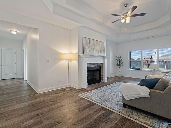Nestled on spacious corner lot boasting delightful curb appeal within Turner Farms, this meticulously cared-for 4BD, 2BTH residence awaits! Functional floor plan offers isolated master suite w/ trey ceiling, tiled shower, separate tub, & walk-in closet. Cozy living room features double trey ceiling, gas fireplace, & luxurious vinyl plank flooring throughout living spaces. Kitchen w/ granite counters, custom backsplash, recessed lighting, & pantry. Additional highlights include generously sized bedrooms, driveway w/ extra concrete, sizable fenced backyard, & an extended patio perfect for entertaining. Conveniently located with easy access to 565, this home offers both comfort and convenience.
