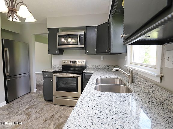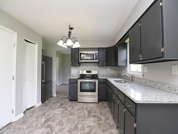 Fall in love with this beautifully remodeled home that is centrally located in Elizabethtown, only steps from Lincoln Trail Elementary and close to I-65, restaurants and more! This stunning home features a large kitchen with stylish grey cabinetry, granite countertops, refrigerator, smooth top oven and microwave; 2 dining areas; a large family room; 4 spacious bedrooms and 2 1/2 bathrooms and new flooring & fresh paint! Schedule your viewing today!