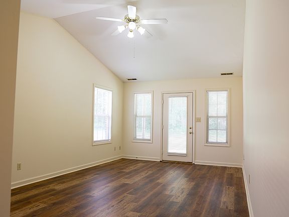 New laminate flooring throughoutStove refrigerator and dishwasherSeparate laundry roomCeiling fansPrivate back patio
