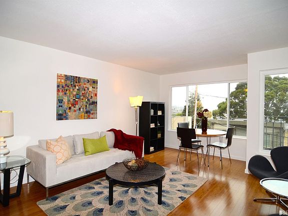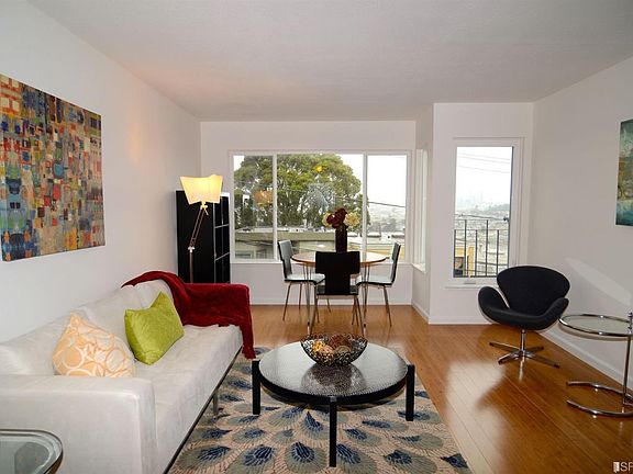 Panoramic Downtown San Francisco Skyline Views from living room/dining room, kitchen, and bedroom in this fabulous North Slope Bernal condo. Prime location. Just moments to Bernal Heights Park and within close proximity to Precita Park. Wonderful open floor plan with living/dining combination and hardwood floors. Modern kitchen with stainless steel appliances. Master bedroom with generous walk-in closet. One-car parking. Shared laundry and shared back patio. Convenient location. Close to public transportation, tech shuttle stops, and 101/280.
