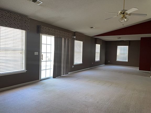 This 3 bedroom 2 bath home offers an open floor perfect for today's lifestyle. Vaulted ceilings are simply beautiful. Kitchen has plenty of counter space and a great workstation. Has a formal dining room. Master bedroom is split from the other rooms and gives a nicely sized master bath. Large counter space and soaking tub is a bonus! The additional bedrooms are nicely sized and barely look like they have ever been used. Entry into the home from the garage offers a large laundry room and space enough for staging of the day. The home has a fenced in back yard, pond, and patio. The patio is extended large enough for your outdoor table, grill, and additional seating if needed. Pets allowed upon approval for an additional $35/ month pet fee.