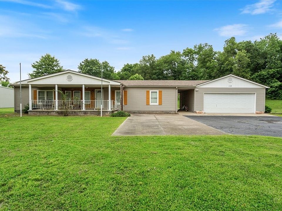 Welcome to 112 Riverview Drive in Anderson, MO! This 1990 model manufactured has been meticulously maintained & boasts many recent upgrades & updates, including a new roof. It has 3 beds, 2 full baths, decks/porches on both front & back, a 2-car attached garage, paved driveway & parking area. It sits in a coveted area subdivision however, the compilation of lots (nearly 4 acres) gives you a mini estate, nestled next to Indian Creek. Perhaps the crown jewel of this unique & uniquely located property is the massive 3,600 red iron shop bldg., that comes complete w/electricity & water. If that isn't enough this subdivision offers exclusive creek access to its owners thru a community river lot that can be used for family outings like swimming, picnics and/or canoeing & kayak put in & take out access. Just over a mile from I-49 & all 3 Anderson schools, it not only offers all the amenities listed but, also quick access to and from larger urban areas to the north in Missouri as well as to the South in Northwest Arkansas.