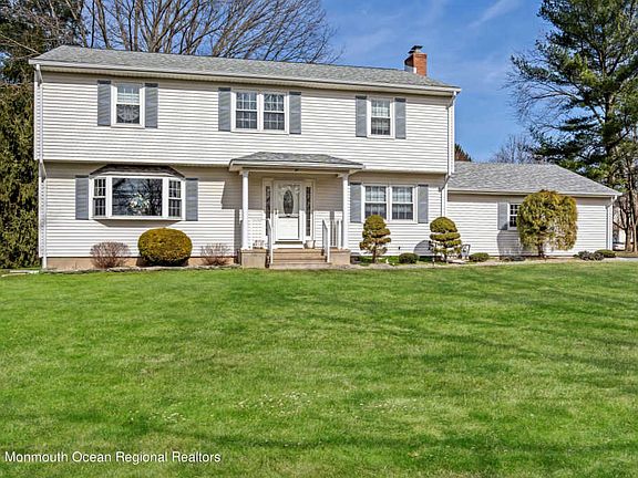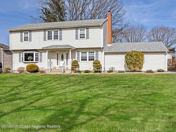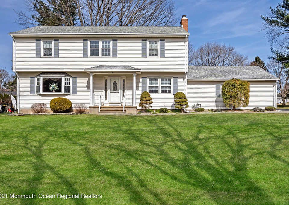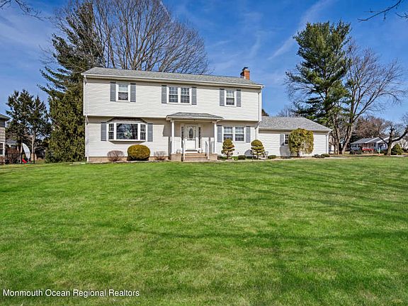 Welcome home to this immaculately kept, 4 bedroom, 2.5 bath Center Hall Colonial sitting on a large corner lot in desirable Freehold Twp. The bright, open foyer leads to the large formal living & dining room on the left, and to the right, a cozy family room with wood burning fireplace. The kitchen has been updated with newer cabinets, tiled backsplash and quartz countertops. Upstairs are 4 generously sized bedrooms with double closets in the Master and plenty of closet space in the remaining bedrooms, including 1 walk-in. The upstairs main bath has been beautifully renovated, and the attached 2 car garage and full basement provide for ample storage. Roof is 5 1/2 years young with transferrable warranty!