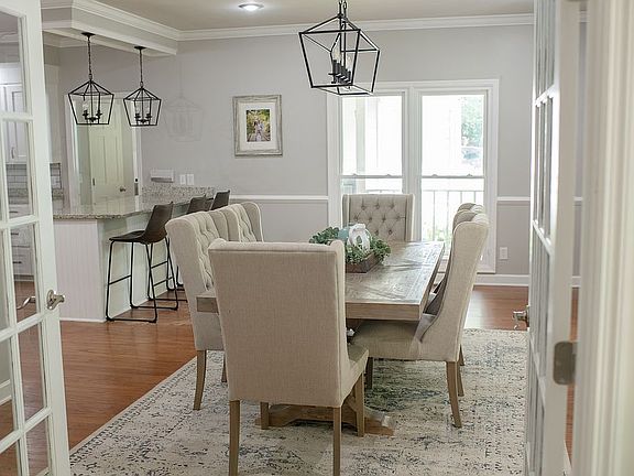 - Formal Dining Room: Floors-Hardwood, Molding, French Doors, Ceilings-High (over 9 Ft), Recessed Lights