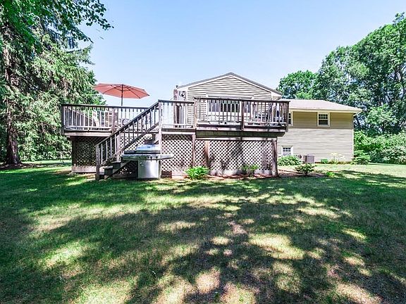 If you're looking for a home convenient to routes 93 and 38, but also want to be tucked away on a terrific, level lot at the end of a cul de sac, you need to check out this property. Perfect open layout for entertaining inside and out. Main level living room has hardwood floor, fireplace and bow picture window. Kitchen has been remodeled and has a gas range, wine fridge, and dining area that has a door that leads to a spacious 2 level, composite deck that is already wired for a hot tub. Dining room addition with sliding door to deck also provides additional outdoor storage below. Three bedrooms with hardwood floors and a remodeled, tiled, full bath. Lower level is carpeted and includes a family room with gas fireplace and a nook perfect for a home office.