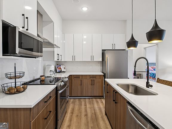 Stunning 2-bedroom, 2-bathroom condo perfectly situated in the highly sought-after Pullman Flats community. Located directly across from Pullman Yards and minutes from the Atlanta BeltLine, Kirkwood Village, local parks, and some of the city's best dining and entertainment, this home offers unmatched convenience and style. Inside, you'll find a bright, open-concept living space with a beautiful modern kitchen featuring a large island with breakfast bar, sleek cabinetry, and stainless steel appliances. The kitchen flows seamlessly into the living room, creating an inviting space for entertaining or relaxing. The primary suite boasts its own covered patio, a spacious walk-in closet, and a luxurious bath with double vanity and tiled walk-in shower. A second bedroom and full bathroom provide flexibility for guests, a home office, or both. You'll also appreciate the in-unit laundry, ample closet space, and a second covered patio off the living area. Residents of Pullman Flats enjoy a host of amenities, including a designated parking space, fitness center, and a rooftop deck with outdoor lounge and grill - perfect for gathering with friends while enjoying skyline views.
