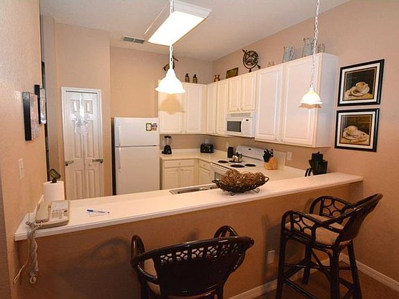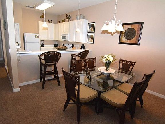 This is a gorgeous 2 bedroom 2 bathroom second floor unit in the Bahama Bay community. It has a balcony and the unit comes fully furnished. Family room comes with flat screen tv and carpet flooring.Beautiful kitchen with breakfast bar and separate dining area. The master bedroom has updated furniture and flat screen tv. Bahama Bay is a great community with many features such as a community pool, fitness center, playground and tennis court. Also the community is guard gated and has 24 hour security to ensure you and your guest feel safe and comfortable while on vacation.