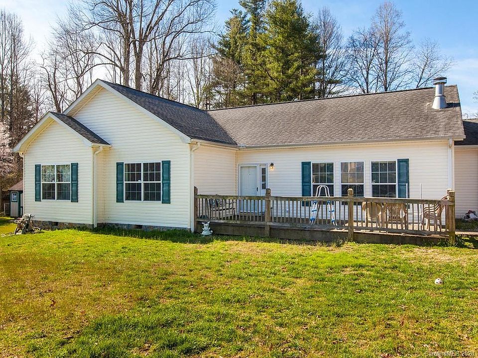 Gorgeous home in Flat Rock on nearly half an acre with a beautiful level yard set against a peaceful woodsy backdrop. You'll appreciate one-level living with 3 spacious bedrooms and 2.5 baths. Huge living room boasts massive windows with an abundance of natural light, custom built-ins and wood-burning fireplace. Large open kitchen is sure to accommodate all of your cooking needs. Updated flooring in kitchen and living room! Plenty of space to dine and entertain guests as well! Highlights include built-in office space, huge front patio and and even larger back deck. Charming storage building matches the house! Enjoy neighbors without being too close to them. Take advantage of this fantastic opportunity in a great location less than 15 minutes to downtown Hendersonville.
