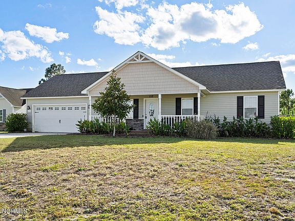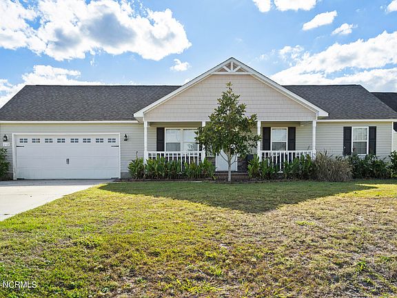 Offered $7000 below recently appraised value AND sellers offering a $5000 Use as You Choose Allowance with an acceptable offer! Check out this gem in North Jacksonville, Onslow County! This 3-bedroom, 2-bath, 2-car garage patio home is what you've been waiting for. Picture yourself on the charming covered front porch, enjoying lazy afternoons in your rocking chair. All three bedrooms conveniently located on one side of the house for easy living. Step inside, and you'll be greeted by a spacious living room with a vaulted ceiling, creating an open and airy feel. The kitchen boasts stainless appliances, a handy pantry, and yes, the fridge is included - PLUS the laundry room is right off the garage and kitchen for your multi-tasking awesomeness. Both bathrooms have been updated, and there's a newer water heater, too. You'll find ceiling fans in all the bedrooms for added comfort. The owner's suite has not one, but TWO closets and a stylish trey ceiling with a fan. Imagine entertaining or just relaxing on your huge covered back patio, overlooking your fenced backyard. And if you like working on projects or need extra storage, the 2-car garage comes with a pass-thru door to the backyard. Concerned about the unknowns? Don't be! The seller has already had a pre-listing home inspection and pest inspection, and they've taken care of many of the items on the report for your peace of mind. Plus, there's a low HOA fee of just $235 a year, which includes access to the community pool. And when you're ready for a change of scenery, you're just a short drive from some of North Carolina's beautiful beaches. Whether you're a first-time buyer or a savvy investor, this home checks all the boxes. Don't miss out on this fantastic opportunity.... call a Realtor in coastal NC today for more info!