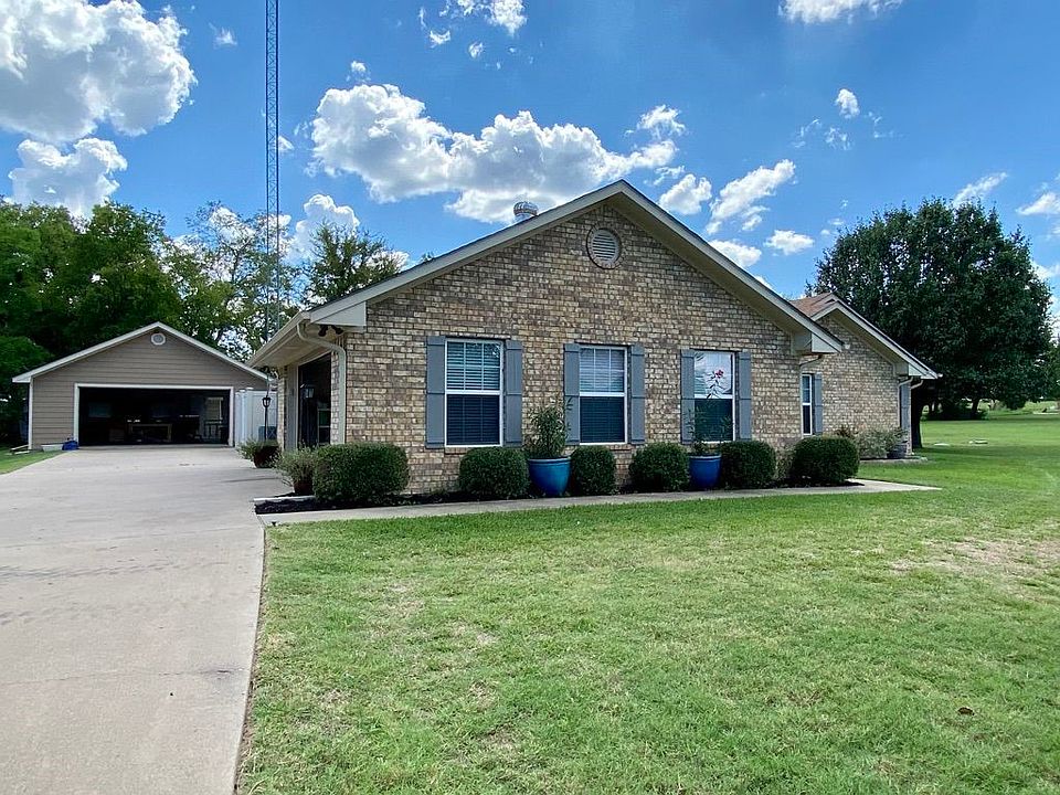 Brick home on 1.10 acres in Lake Fork Estates, with adjoining lot of 1.11 acres also available for sale, one half mile from Lake Fork. This updated 4-bedroom 2-bath home has an attached oversized 2-car garage, plus a large detached 2-car garage or workshop with built-in cabinets, 2 window ac units and half bath. Low maintenance saltwater pool has new equipment recently replaced; separate hot tub next to pool. Covered tiled patio. The kitchen has granite counters, updated cabinets & hardware, breakfast nook and separate dining room. Ceramic tile throughout majority of home with carpet in 3 bedrooms. Gas-log FP, decorative lighting, and outside security lighting. Large main bedroom suite with separate shower, jetted garden tub and large vanity with dual sinks. Recent landscaping.