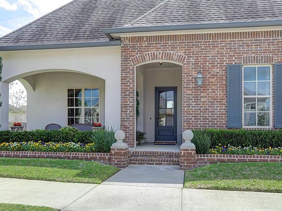 A Couret Farms stunner! This beautiful 3 bed, 2 bath home with office is magazine-worthy inside and out. Meticulously cared for and maintained, youll sense the pride of ownership the moment you step inside. Many upgrades have been added since the original owners purchased, including installing ceramic tile in the master bedroom and closet and a top-of-the-line KitchenAid stainless appliance suite. The living spaces flow together for easy entertaining. Plenty of natural light abounds. Then theres the patios- two more amazing spaces! Enclosed by a brick wall with windows with views and yet a private feel, the back patio is a masterpiece to behold, maximizing the layout on the corner lot. Both the fountain and fireplaces remain.