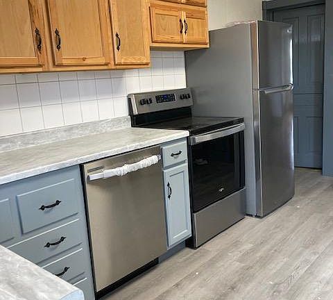 New roof, interior and exterior paint, kitchen, and appliances. One car detached garage and flat yard. Attic and basement storage. Electric baseboard heat in each room supplemented by natural gas heater in dining room. Photos do not show new lighting fixtures that will be installed shortly.