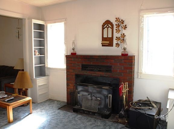 - Wood Burning Stove, Flooring: Carpet, Fireplace