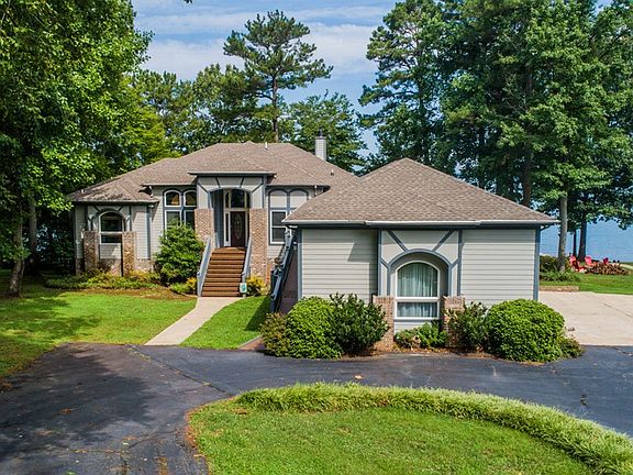 This spacious custom waterfront home is situated on an amazing lot w/ breathtaking sunsets & some of the widest water views on Beautiful Lake Gaston! This well-maintained home boasts an open floor w/ beautiful wood floors, tall ceilings, 3 bdrms AND 3 undesignated rms, covered & screened porches & patios within a few steps of the water's edge, 3 car attached garage, paved drive, & more. Featuring an impressive kitchen w/ 2 large islands-pantry-ample cabinetry & counter space- great room w/ 2 sided stone fireplace, waterside primary suite w/ full bath w/ separate vanities, tile shower, & 2 walkin closets.- Lower level offers a lg rec rm w/ 2nd fireplace & wet bar & additional guest bedrooms perfect for the large family. The large boathouse has 2 slips, covered & uncovered deck areas & storage room. Most furnishings convey! NEW HVAC & Roof on home & boathouse in 2020. Call for your viewing
