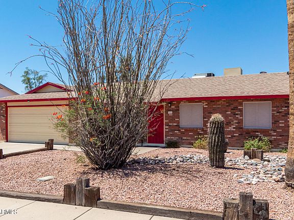 A beautiful 3 beds, 2 baths property awaits you here in desirable Chandler! Starting from the 2 car garage, mature desert front yard, and a charming accent facade, step inside this beauty to discover a bright and light interior, two-tone paint, vaulted ceilings, gorgeous wood-like flooring throughout, and a living room w/bay windows great for entertaining. Enjoy cooking in this bright and spacious kitchen complete with plenty of cabinets and granite counter space, appliances, and a dining area, not to mention the large walk-in pantry next to the laundry area. The primary bedroom includes a private exit, bath, and mirrored closet. The large gravel backyard is comprised of a covered patio, RV gate, and tons of potential to customize and make it your own. Hurry, this home will not last!