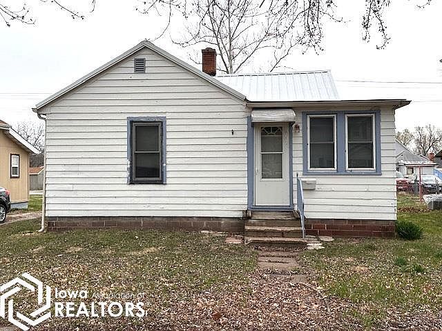 Affordable and full of potential, this 2-bedroom, 840 sq ft home on Ottumwa’s south side is a smart buy for investors or first-time homeowners. With some updates already in place, it features a newer metal roof, wood siding, and a 20' x 24' detached garage with alley access—ideal for storage or rental appeal. Inside, you’ll find a spacious living room with hardwood floors beneath the carpet, washer/dryer hookups in the kitchen, and a functional bathroom with a shower. A window A/C unit provides seasonal comfort, and the enclosed front porch adds bonus living space. Appliances are negotiable, giving you flexibility to customize or rent quickly. With solid bones and an attractive price point, this property is a great value in a convenient location.