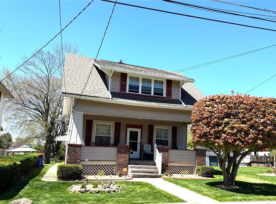 Welcome Home to this Charming, Comfortable 2 story vinyl sided home offering 3 bedroom and 3 bathrooms. The main floor features an open floor plan with a large, updated oak kitchen featuring substantial cabinetry, counterspace and breakfast bar. Perfect for someone who loves to cook and bake or simply entertain. Formal living room and dining room add additional space. Original woodwork throughout. Possibly some hardwood floors. First floor laundry with full bath finishes off the main floor. Second level offers 3 sizable bedrooms with surprising walk-in closets as well as full cedar lined closet in hallway area. Home is partially remodeled, updated with new features and ready to move in. Enjoy relaxing on the outside newer deck overlooking a level yard. Two car garage is an added feature with easy alley access.