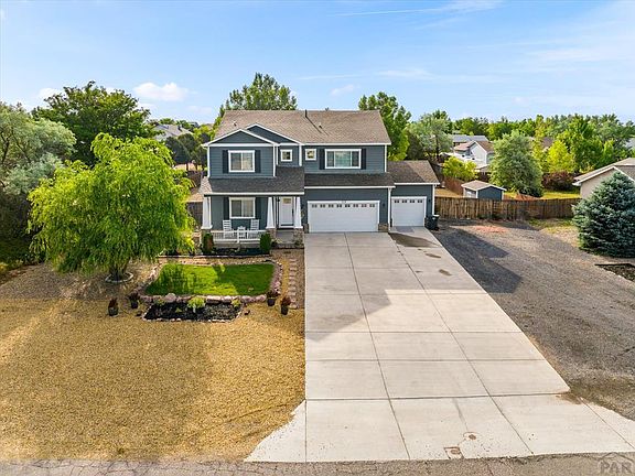 A MUST SEE! Stunning 2-Story home with finished basement in the Pueblo West golf course area. This attractive 6BED 4BATH 3CAR home (built in 2017) shows like new & has many custom features & additional recent upgrades throughout. Features a great floor plan perfect for entertaining with 3 separate living areas. Over 4200 sqft of living space. Main level includes gorgeous engineered hardwood floors. Impressive kitchen with huge island (10ft), desk space, granite countertops, custom backsplash & all newer black stainless appliances (including gas-range). NEWLY added butler's pantry (refrigerator included). Gorgeous custom gas-log fireplace in living room added in 2019. 6th bedroom on main set up as a great home office. Upper level features 4 spacious bedrooms (NEW carpet), family room (NEW flooring) & laundry room w/tile floors. Huge primary bedroom suite with a NEWLY remodeled 5pc bath with NEW walk-in jetted tub & oversized walk-in closet. Finished basement (fully permitted) features beautiful LVP flooring, hand textured walls & a spectacular custom Wet Bar (both mini-fridges included). Basement includes an additional bedroom, half-bath, 2 separate living areas plus a large wrap-around storage room. Outside features pristine landscaping, covered front porch, covered rear patio, custom raised garden beds & NEWER storage shed. Sits on a huge lot (over 1/3 acre) with RV parking & convenient access to Hwy 50W & all amenities. Schedule your showing today!